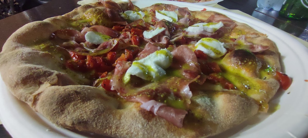 Ordered take away pizzas (we collected) which were produced promptly and proved absolutely delicious. We tried the “4 Stagioni” and the “Bufala con Diavola”, both of which were perfect. Staff polite and efficient. There was a large choice of toppings ranging in price between €5-10 with most costing €7-8. A small outdoor seating area is available for people to dine in. Although on a road it wasn’t busy while we were there (7pm).